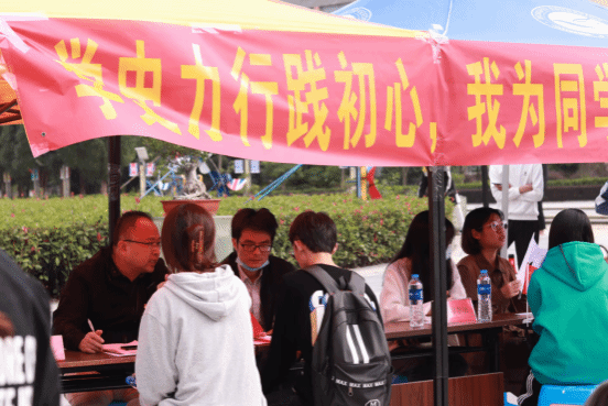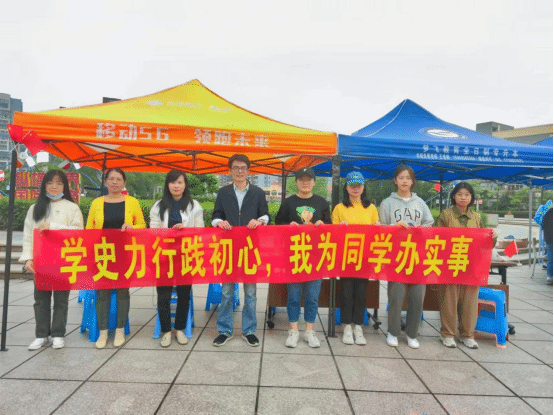 为学习贯彻习近平总书记在党史学习教育动员大会上的重要讲话精神,坚持学做结合、以生为本,把党史学习教育与履职尽责有机结合。11月2日,支部与联合共建支部国际经贸学院学生第三党支部在马尾校区白鸽广场开展“学史力行践初心,我为同学办实事"实践活动。