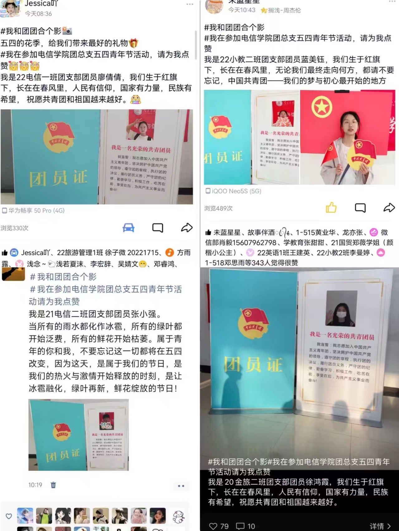 一面团旗就是一种信仰,一枚团徽就是一份力量,一张合影就是一段青春。通过团员与团旗、团徽的创意合影,增强共青团员的身份意识和责任意识,激发广大团员青年为团旗增色、为团徽增光的热情,展现出当代青年大学生的精神风貌,激发青年奋进新征程、建功新时代的青春豪情。