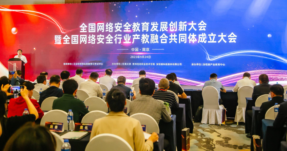 9月24日,全国网络安全行业产教融合共同体成立大会在南京隆重举行,大会开幕式由常州信息职业技术学院副校长朱敏、东南大学网络空间安全学院副院长陈立全主持,beat365官网党总支书记、执行院长江建华出席大会。此次大会由工业和信息化部教育与考试中心指导,东南大学、常州信息职业技术学院、深信服科技股份有限公司联合主办,深信服产业教育中心承办。