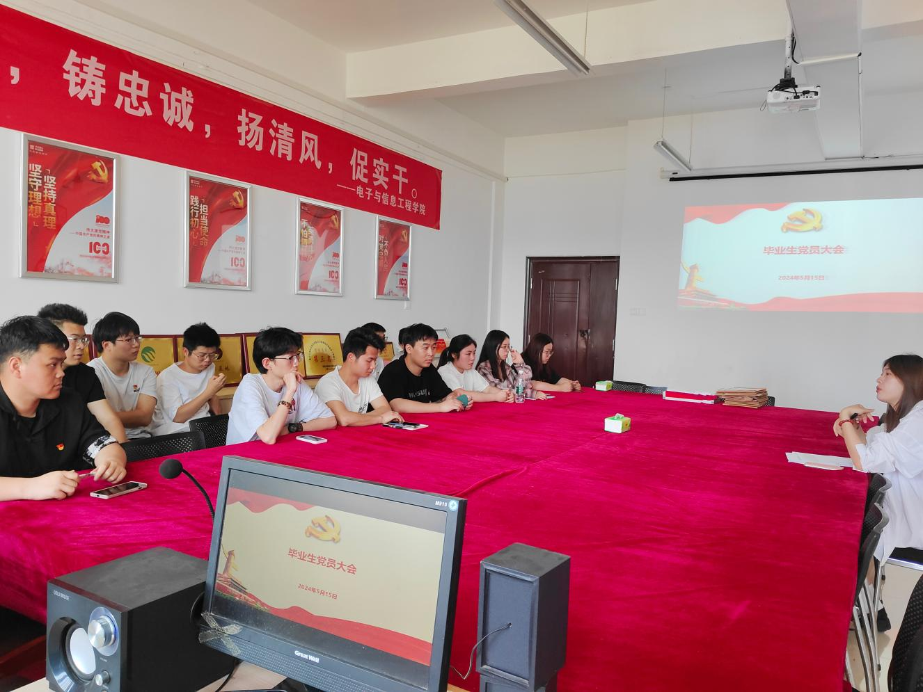 为贯彻落实全面从严治党要求,做好高校毕业生党员组织关系管理工作,进一步加强毕业生党员教育管理,坚定党员理想信念,提高党性修养,更好地发挥党员的先锋模范作用。beat365英国官方网站于2024年5月15日在1407党员活动室召开毕业生党员大会,此次大会由第二党支部书记程明珠同志主持,毕业生党员同志参加本次会议。