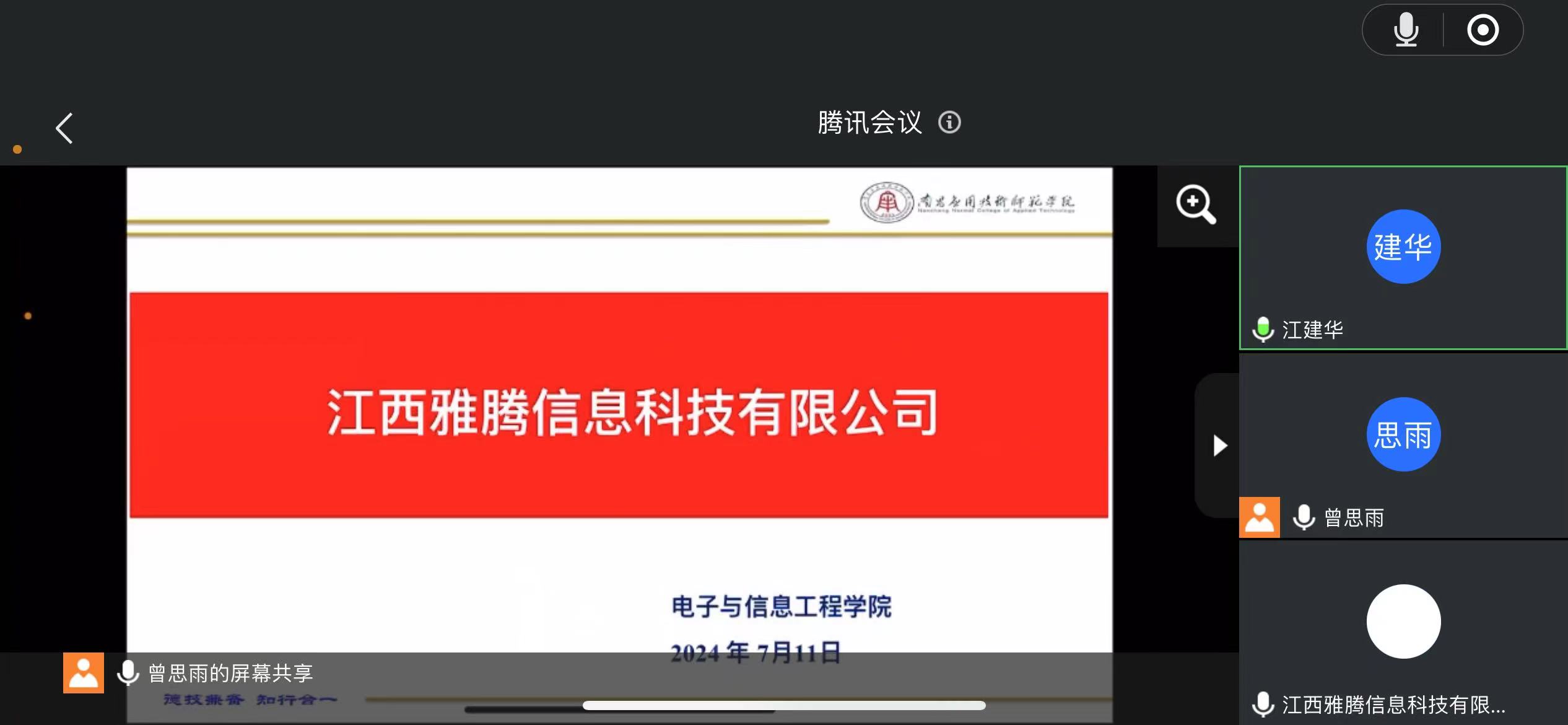 为拓展优质就业岗位,推动学校2024 届毕业生高质量就业。7月11日,学院党总支书记江建华和省内百强企业江西儒果科技有限公司、行业百强南昌雅腾信息科技有限公司进行线上访企拓岗。会议由就业专员曾思雨主持。