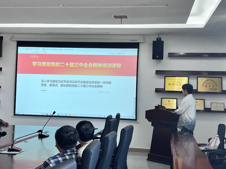 此次党日活动,由易志贤同志组织全体党员教职工集中学习贯彻党的二十届三中全会精神培训。由刘军同志领学《深入学习贯彻习近平总书记关于全面深化改革的一系列新思想、新观点、新论断和党的二十届三中全会精神》。进一步认识关于进一步全面深化改革的重要性,增强了党员同志的精神力量。同时,易志贤同志还针对预备党员转正前的各项事项,进行了深入的讲解。