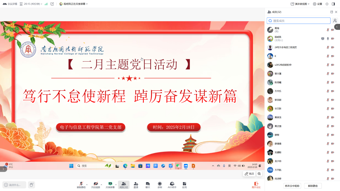 为深入学习习近平新时代中国特色社会主义思想和习近平总书记重要讲话精神,激励党员始终以榜样为标杆,提升服务意识,发挥先锋模范作用,beat365英国官方网站第二党支部于2月18日在腾讯会议组织开展“笃行不怠使新程,踔厉奋发谱新篇”主题党日活动。