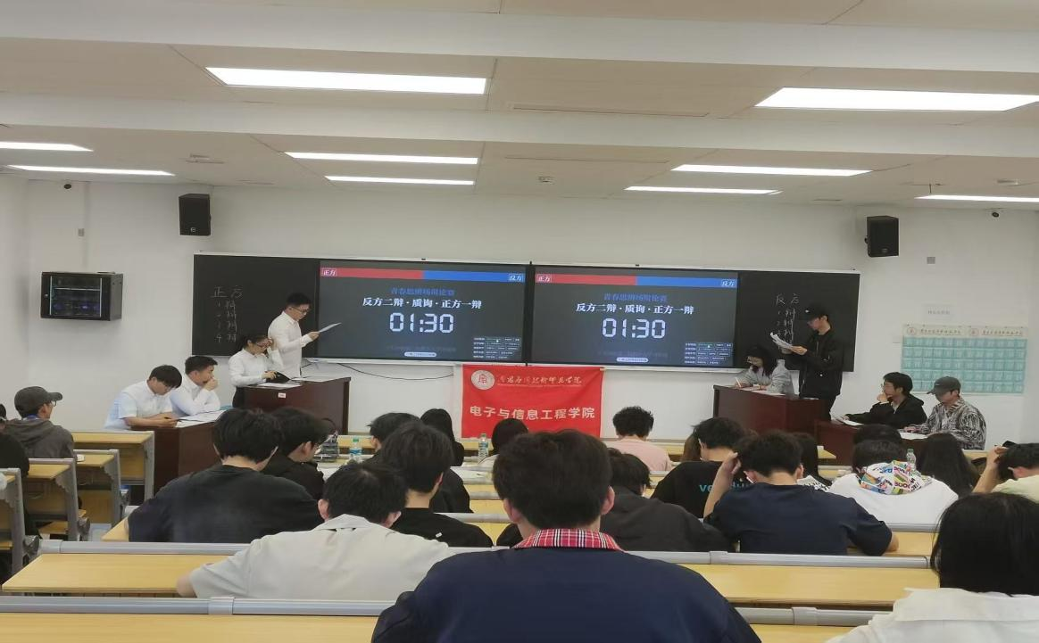 为丰富同学们的课余生活,培养同学们的逻辑思维能力与语言表达能力,增强团队协作精神,营造积极向上的校园文化氛围,电子与信息工程学院班级事务管理中心于2025年4月11日-4月25日精心组织了以“青春思辨场:象牙里的罗曼蒂克该不该生长?”为主题的辩论赛。