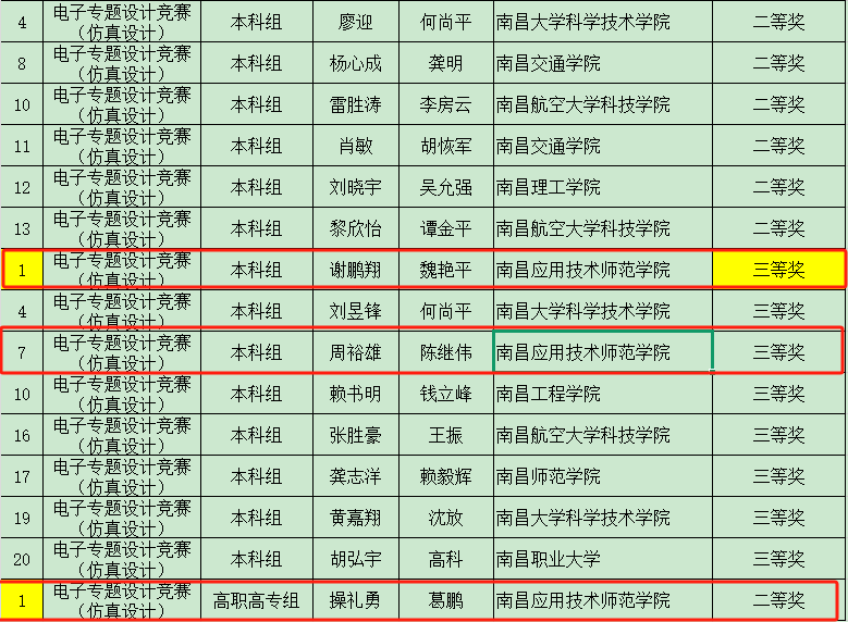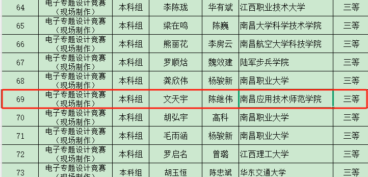 5月17日-5月18日,beat365官网文天宇、叶程、操礼勇等14名学子在陈继伟、魏艳平、韩玉文、葛鹏等教师的带领下,参加由江西省高等教育学会主办,南昌航空大学科技学院和吉安职业技术学院联合承办的2025年江西省大学生科技创新竞赛电子专题设计赛现场制作赛和仿真设计赛。