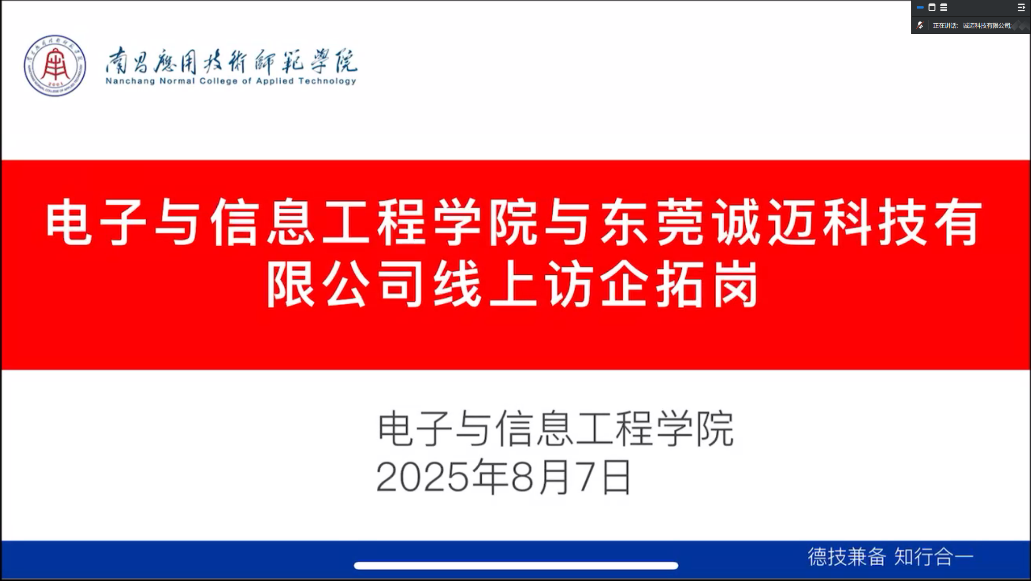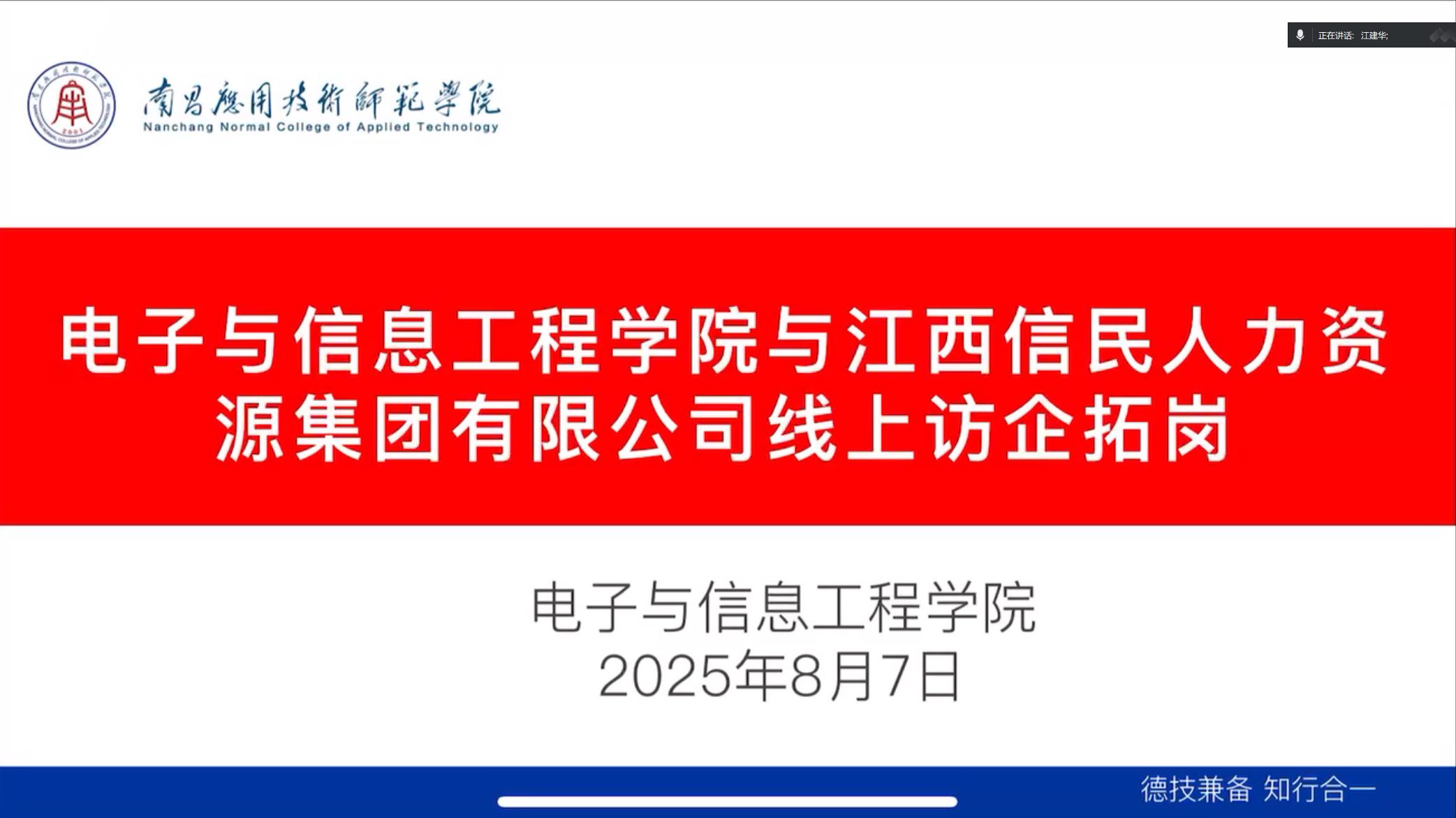 为促进校企合作,加强与企业的合作交流,为学生拓展更多实习就业机会,近日,电子与信息工程学院党总支书记江建华在腾讯会议与多家公司开展访企拓岗活动,旨在加强学院与企业的沟通联系,了解行业发展趋势与人才需求,为学生拓展更多实习就业机会,推动校企合作向纵深发展。
