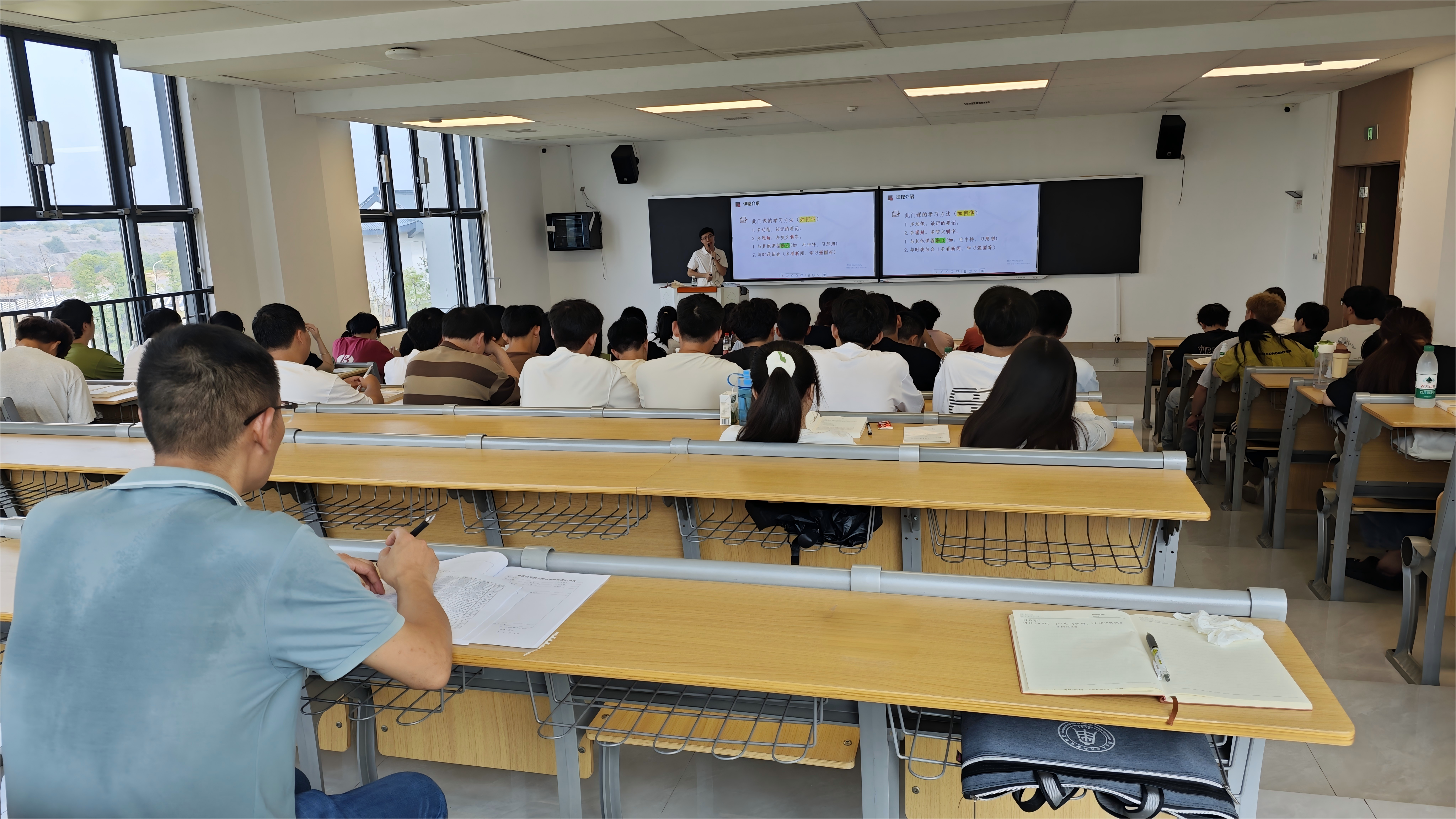 为深入贯彻落实立德树人根本任务,切实发挥思想政治理论课程关键作用,提升思政课教学质量和育人实效,9月8日上午,校长助理李少义教授前往beat365英国官方网站,与学生同上一堂思政课。