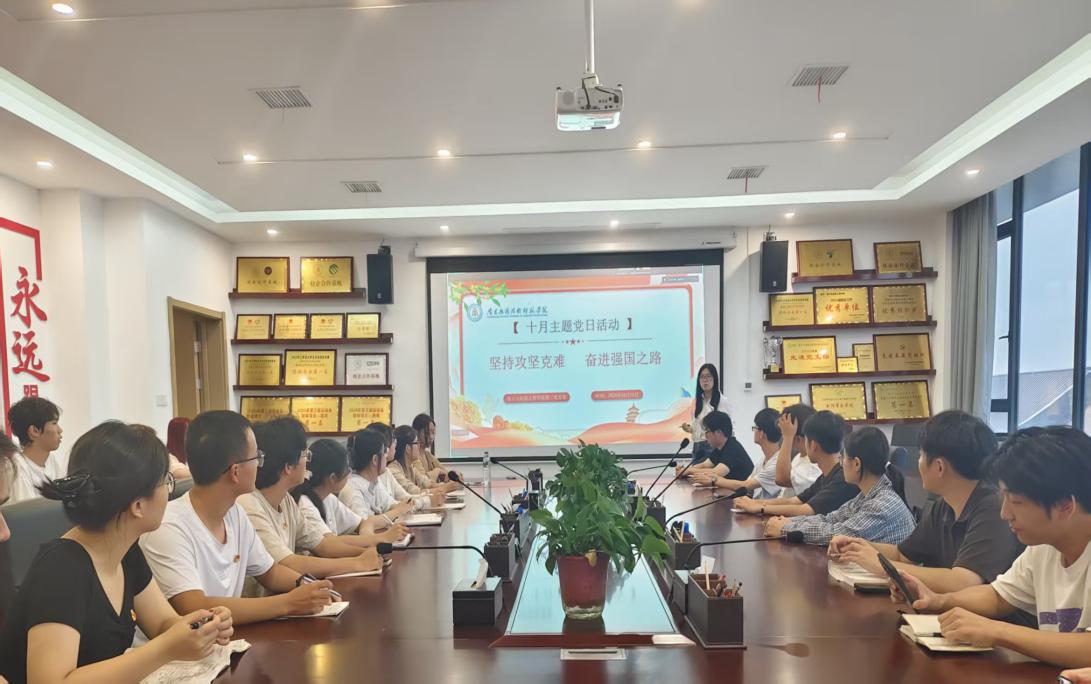 为深入学习贯彻习近平新时代中国特色社会主义思想,进一步增强党员同志的使命担当,激发攻坚克难的精神,凝聚起奋进强国建设的强大力量,beat365英国官方网站第二党支部于2025年10月15日在沁苑5实506会议室开展“坚持克难攻坚·奋进强国之路”十月主题党日活动。此次活动由第二党支部书记程明珠主持,全体党员参加会议。
