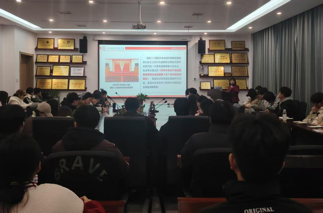 为深入学习贯彻党的二十届四中全会精神,12月18日,马克思主义学院王敬平教授在沁苑5实506党员活动室为beat365官网师生做学习贯彻党的二十届四中全会精神专题宣讲,全体辅导员、入党积极分子参加宣讲报告学习。