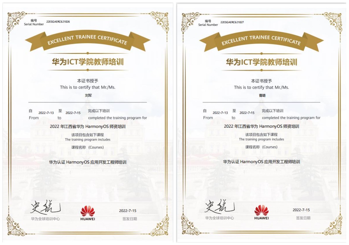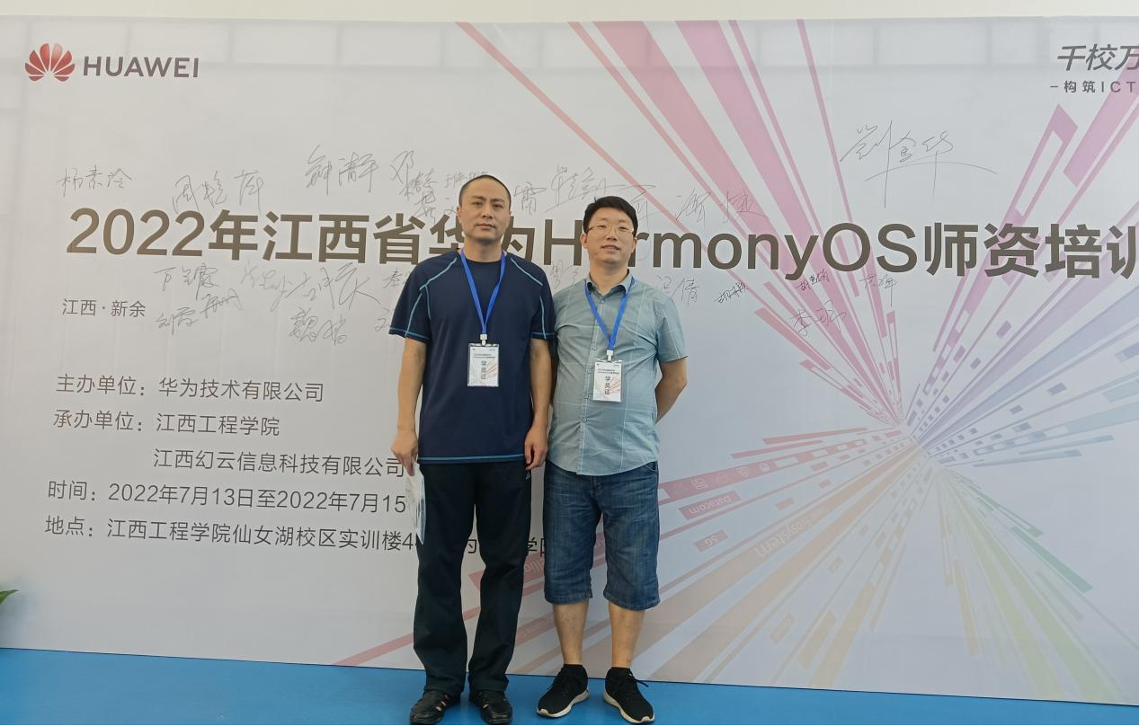 为拓宽教师教学视野,加深对华为HarmonyOS的认识和了解,推进软件工程专业教学改革,7月13日-15日,beat365官网选派软件工程专业教师刘军、曹璐参加由华为技术有限公司在新余举办的HarmonyOS师资培训。