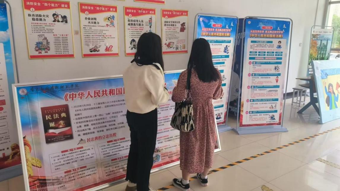 一份签名一种承诺,一份手册一盏明灯。通过在民法典宣传展板上签字,强化了民法典在学生们心中的重要地位,也增强了民法典与我们的美好生活紧密联系的认同感。阅读宣传手册,也让学生们认识到民法典既是保护自身权益的法典,也是全体社会成员都必须遵循的规范,自觉养成守法的意识,形成遇事找法的习惯,培养解决问题靠法的意识和能力。同时,对于民法典相关问题咨询,相关人员也为同学们答疑解惑,让学生们对民法典有更加充分的认识。
