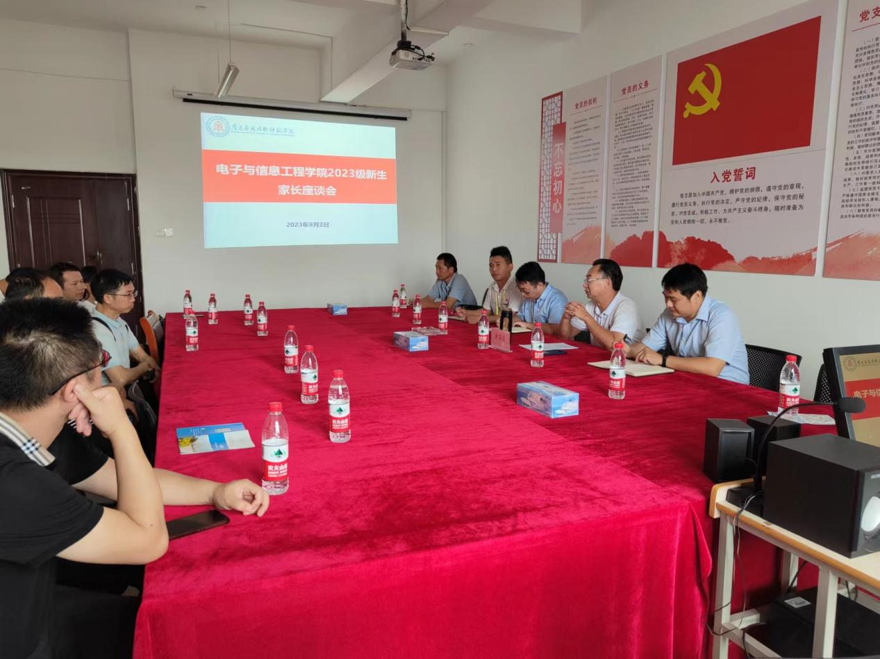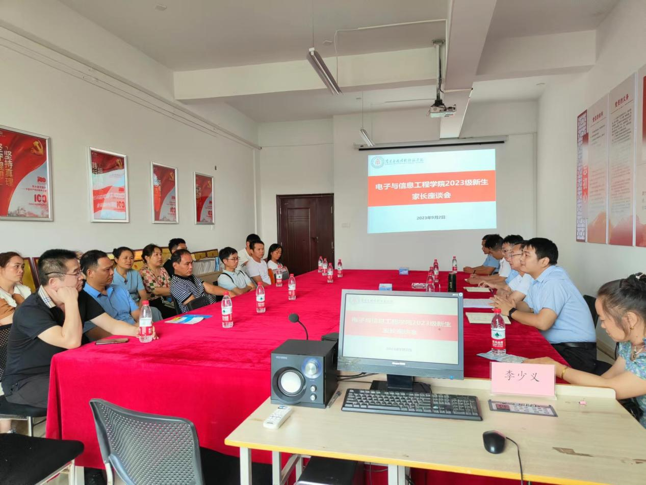为凝聚家校合力共识,更好地助力学生成长成才,让新生家长全面、及时的了解学校和学院的基本概况,共同促进学生的全面发展。9月2日,电子与信息工程学院召开2023级新生家长见座谈会,校长助理兼院长黄国清、党总支书记兼执行院长江建华、副院长刘军、党总支副书记黄金标参加座谈会,座谈会由江建华主持。