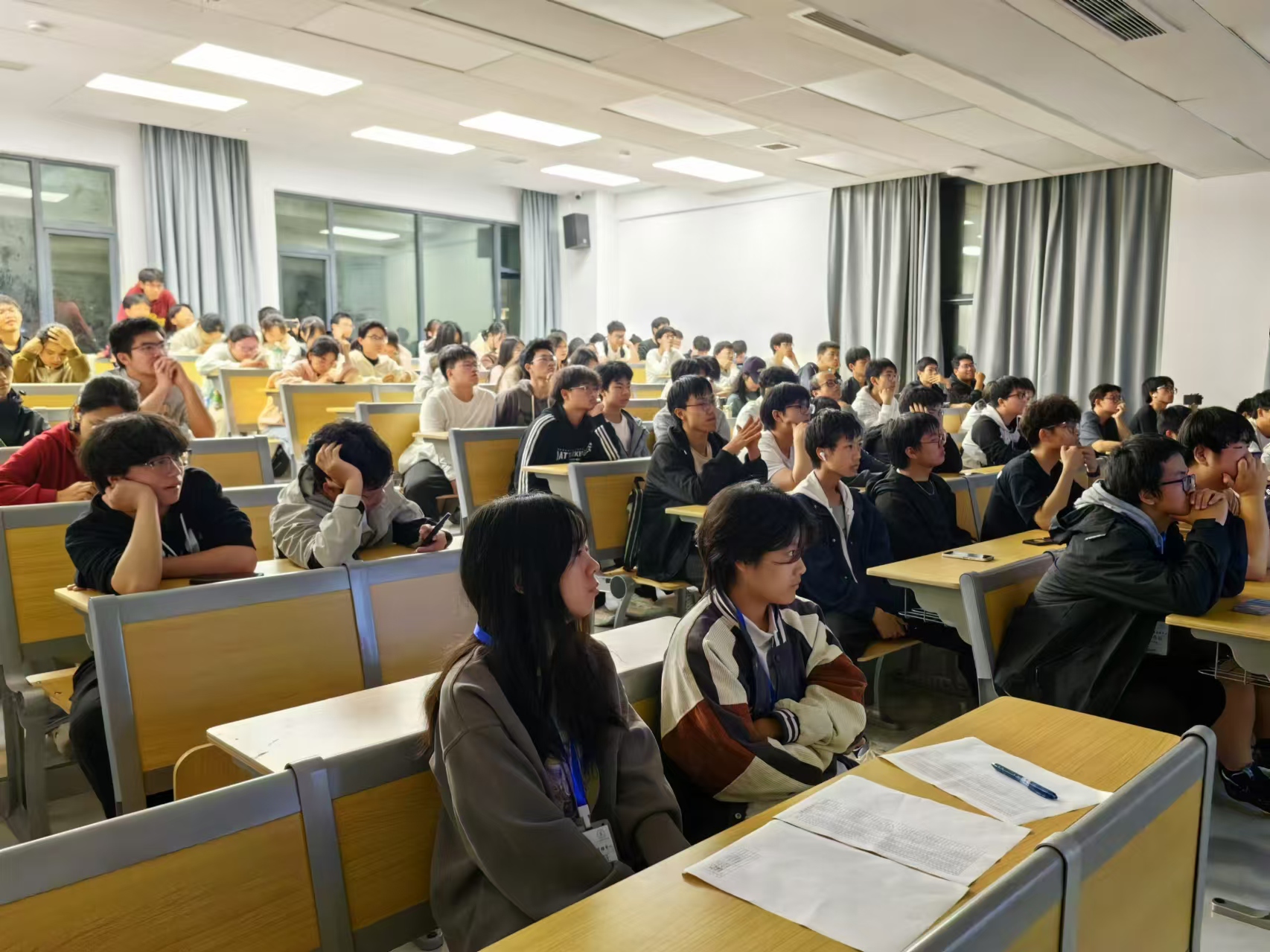11月15日,为营造一个公平、公开、和谐的比赛环境,活动在沁苑2教A109开展。最后的决赛吸引了众多同学们的关注,同学们一起前往比赛现场观看,为参赛选手们加油打气,比赛氛围变得激烈且精彩。观众们的加油呐喊、选手们的专注眼神,以及每一次精彩的操作,都让这场比赛成为了一个难忘的电竞盛宴。这种氛围不仅让观众们更加投入,也让他们深刻体会到竞技所带来的乐趣和激情。