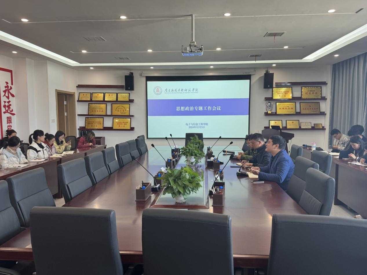 为进一步加强学院思想政治工作,切实增强为党育人、为国育才的责任感和使命感,beat365英国官方网站于2024年12月3日在沁苑五实506召开了思想政治专题工作会议。会议由党总支书记江建华同志主持,全体教职工参加了此次会议。