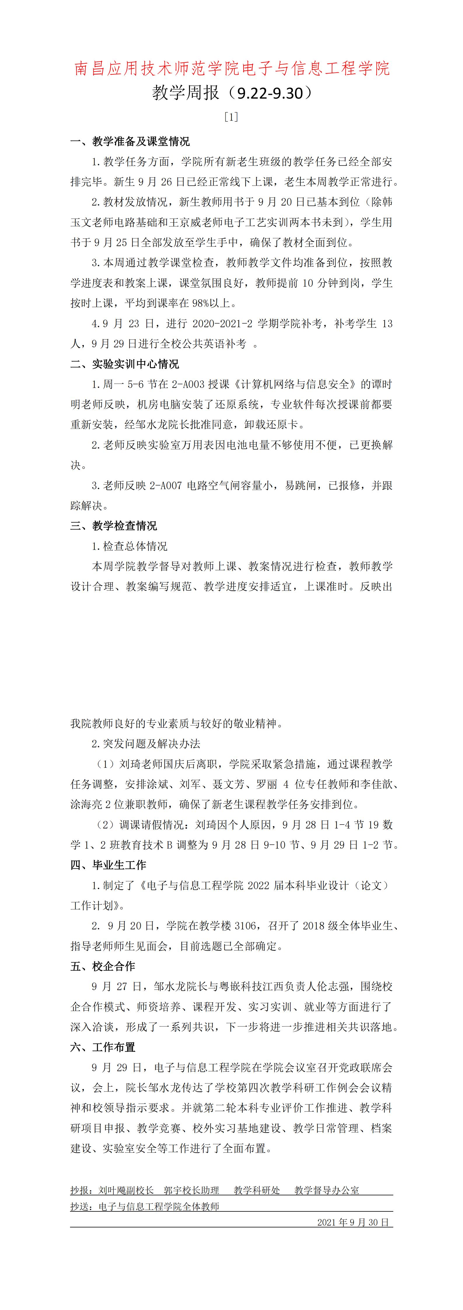 首页栏目 学院新闻 学院公告 学科竞赛 学生工作 您现在的位置是:首页 > 首页栏目 > 学院公告 学院教学周报【1】号 管理员2021-09-301017 上一篇 关于2021年中秋节、国庆节放假安排的通知 下一篇 关于校级优秀共青团员、校级五四红旗团支部、校级优秀志愿者拟推荐名单