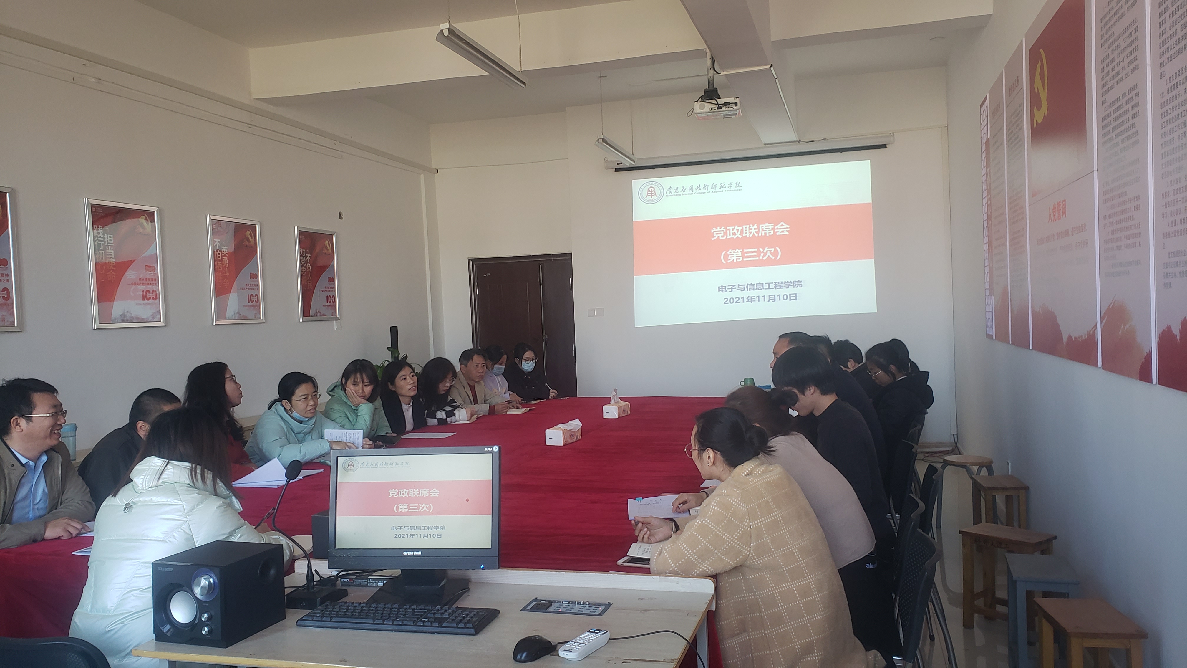 11月10日,beat365英国官方网站在学院会议室召开第三次党政联席会议,全体教职工参加了会议,会议由院长邹水龙主持。