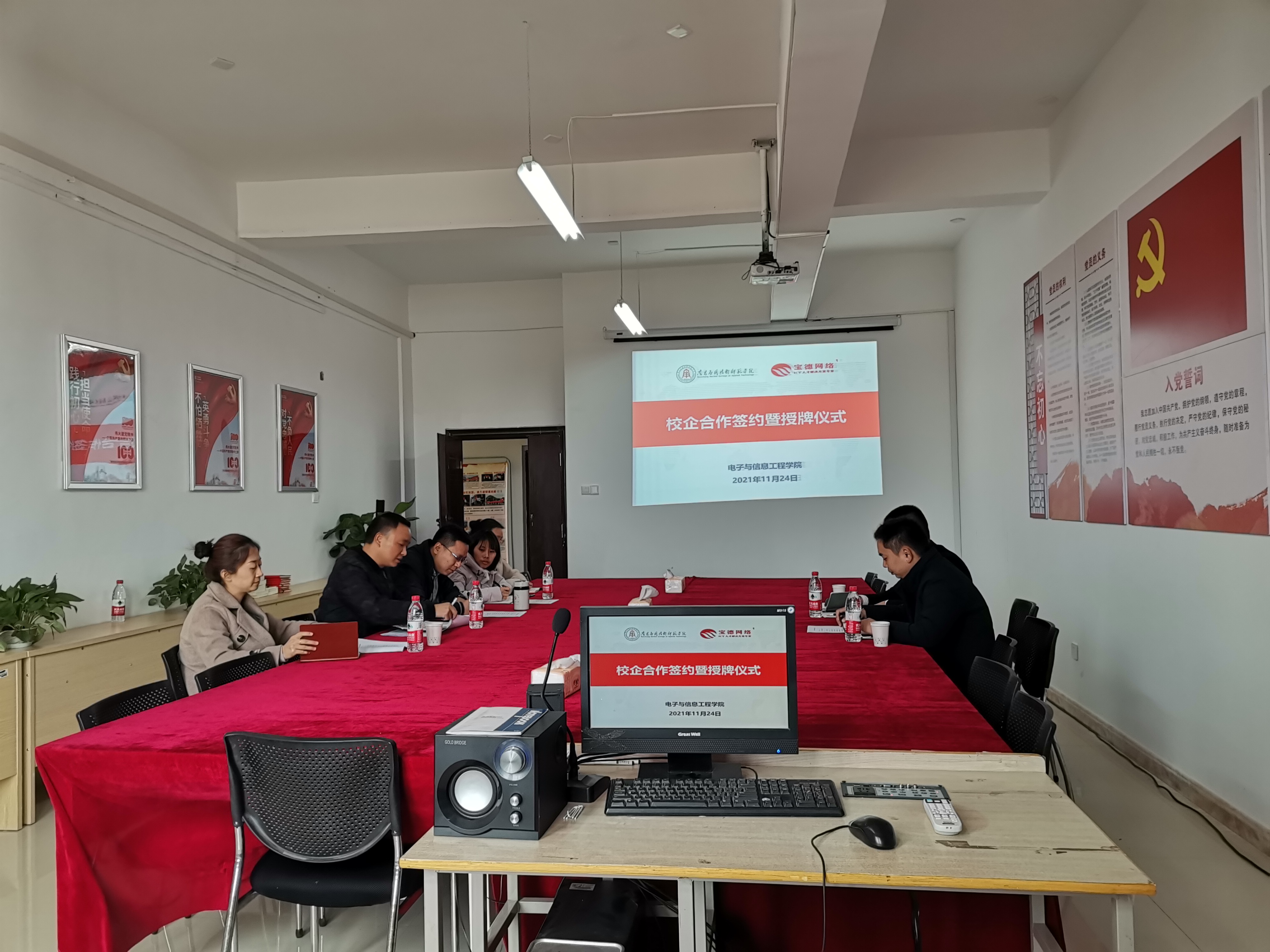 11月24日,beat365英国官方网站在学院会议室举行校企合作签约暨授牌仪式,合肥宝德网络技术有限公司江西分公司总经理荣飞飞、高级院校经理胡珍贵出席了仪式,beat365英国官方网站书记龙犇、教务科长潘洪雪、学工科长姜多华及相关老师参加了仪式,仪式由院长邹水龙主持。
