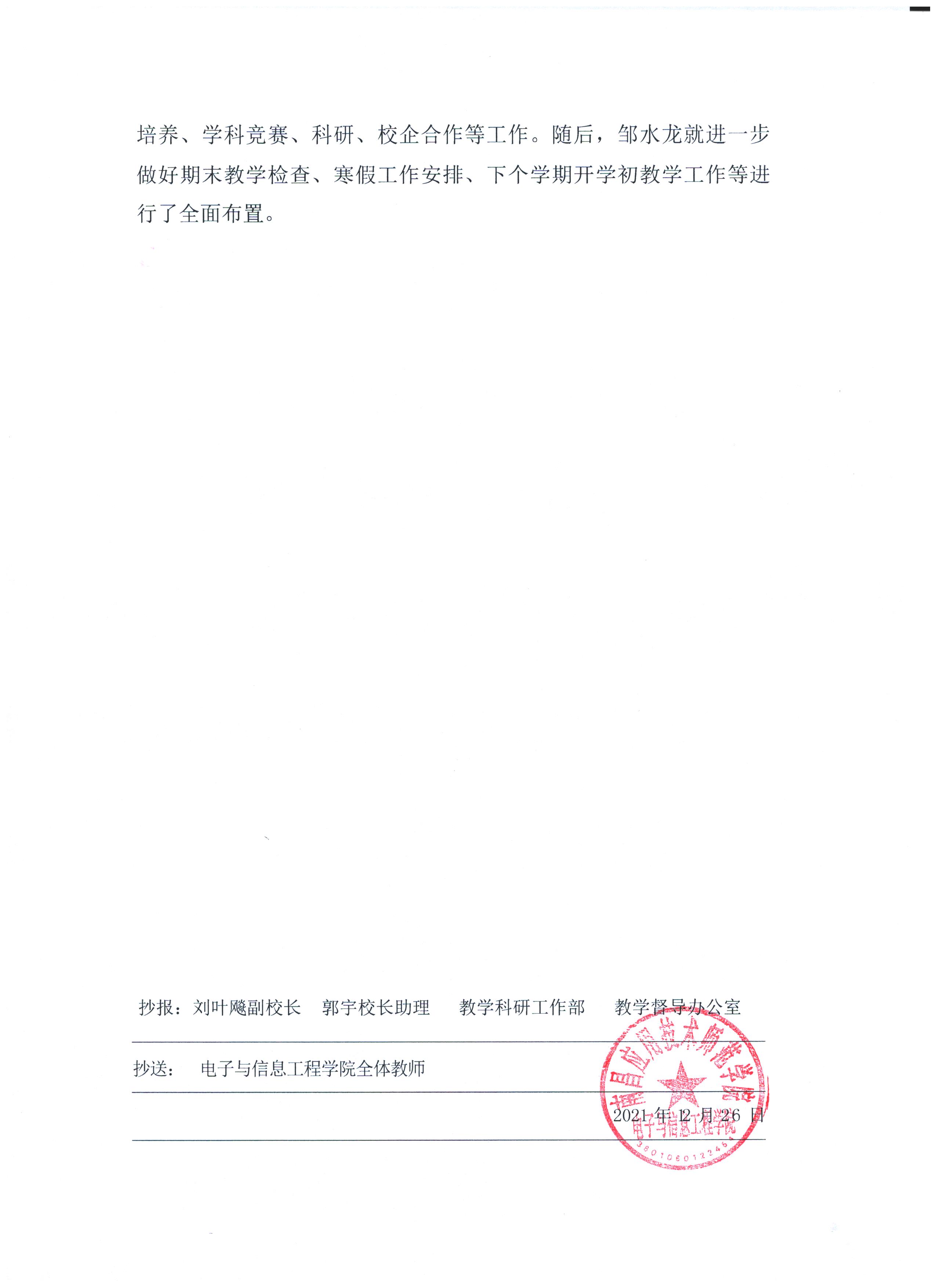 首页栏目 学院新闻 学院公告 学科竞赛 学生工作 您现在的位置是:首页 > 首页栏目 > 学院公告 学院教学周报【12】号 管理员2021-12-27890 上一篇 学院教学周报【11】号 下一篇 关于校级优秀共青团员、校级五四红旗团支部、校级优秀志愿者拟推荐名单