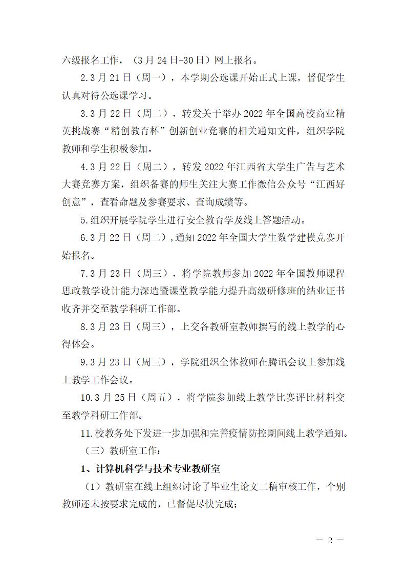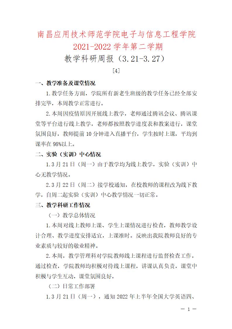 首页栏目 学院新闻 学院公告 学科竞赛 学生工作 您现在的位置是:首页 > 首页栏目 > 学院公告 学院2021-2022学年第二学期教学科研周报【4】号 管理员2022-03-281164 上一篇 关于继续做好学校全封闭管理的通知 下一篇 关于校级优秀共青团员、校级五四红旗团支部、校级优秀志愿者拟推荐名单