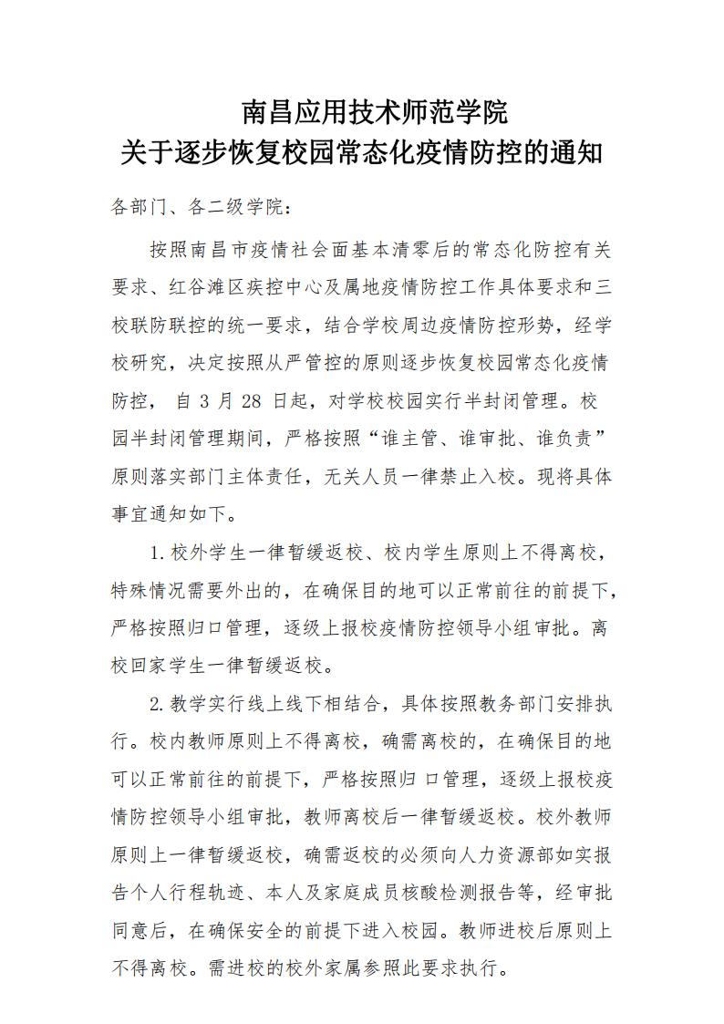 首页栏目 学院新闻 学院公告 学科竞赛 学生工作 您现在的位置是:首页 > 首页栏目 > 学院公告 关于逐步恢复校园常态化疫情防控的通知 管理员2022-03-28863 上一篇 学院2021-2022学年第二学期教学科研周报【4】号 下一篇 关于校级优秀共青团员、校级五四红旗团支部、校级优秀志愿者拟推荐名单