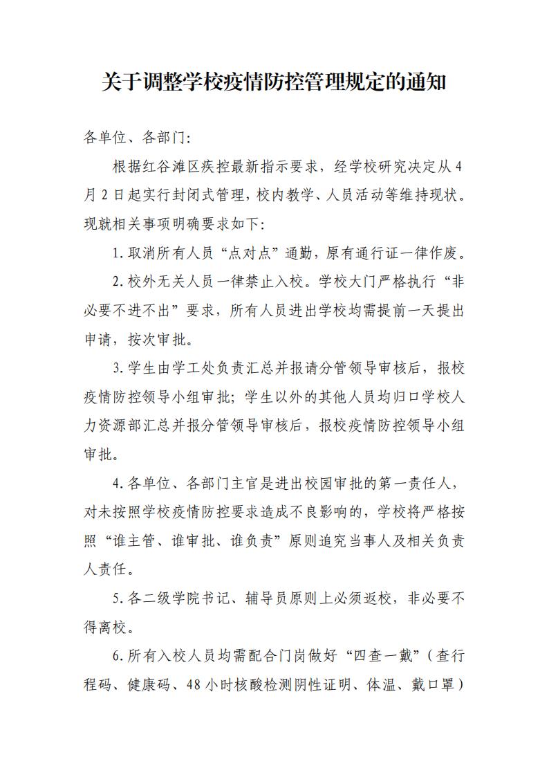 首页栏目 学院新闻 学院公告 学科竞赛 学生工作 您现在的位置是:首页 > 首页栏目 > 学院公告 关于调整学校疫情防控管理规定的通知 管理员2022-04-02886 上一篇 关于逐步恢复校园常态化疫情防控的通知 下一篇 关于校级优秀共青团员、校级五四红旗团支部、校级优秀志愿者拟推荐名单