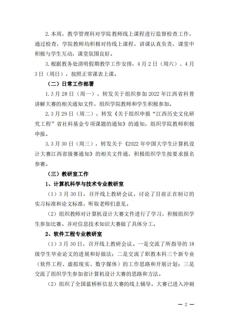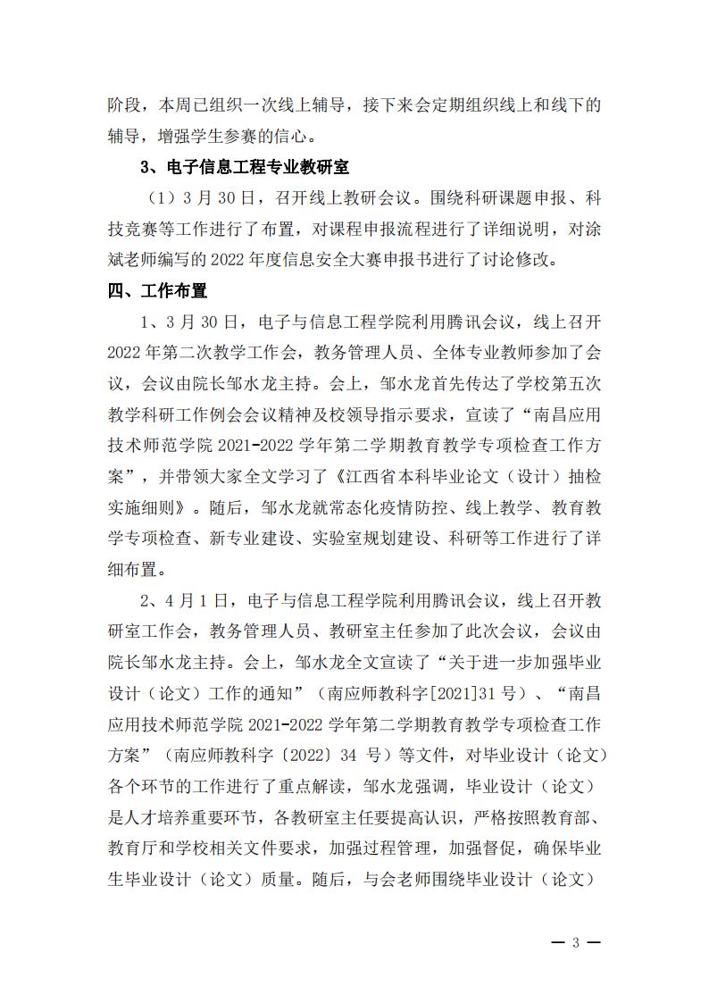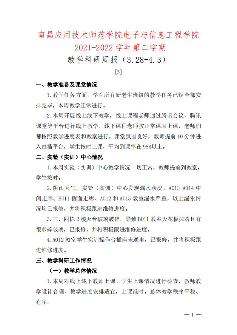 首页栏目 学院新闻 学院公告 学科竞赛 学生工作 您现在的位置是:首页 > 首页栏目 > 学院公告 学院2021-2022学年第二学期教学科研周报【5】号 管理员2022-04-041230 上一篇 关于调整学校疫情防控管理规定的通知 下一篇 关于校级优秀共青团员、校级五四红旗团支部、校级优秀志愿者拟推荐名单