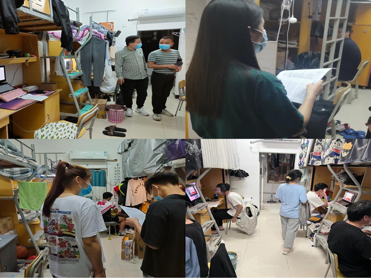 在此次走访寝室过程中,院长邹水龙和党总支书记龙犇及各楼层楼层长与同学们进行了亲切交流,了解学生的学习及生活,细心向同学们解释学校网格化管理的各项细则,落实学生的“朝六晚九”“晨午晚检”制度,告知学生出门戴口罩,回寝勤消毒,身体不适及时上报。同时,疫情封闭管理期间,鼓励学生调节好自身情绪,保持健康的生活作息,并积极配合学校疫情防控工作。