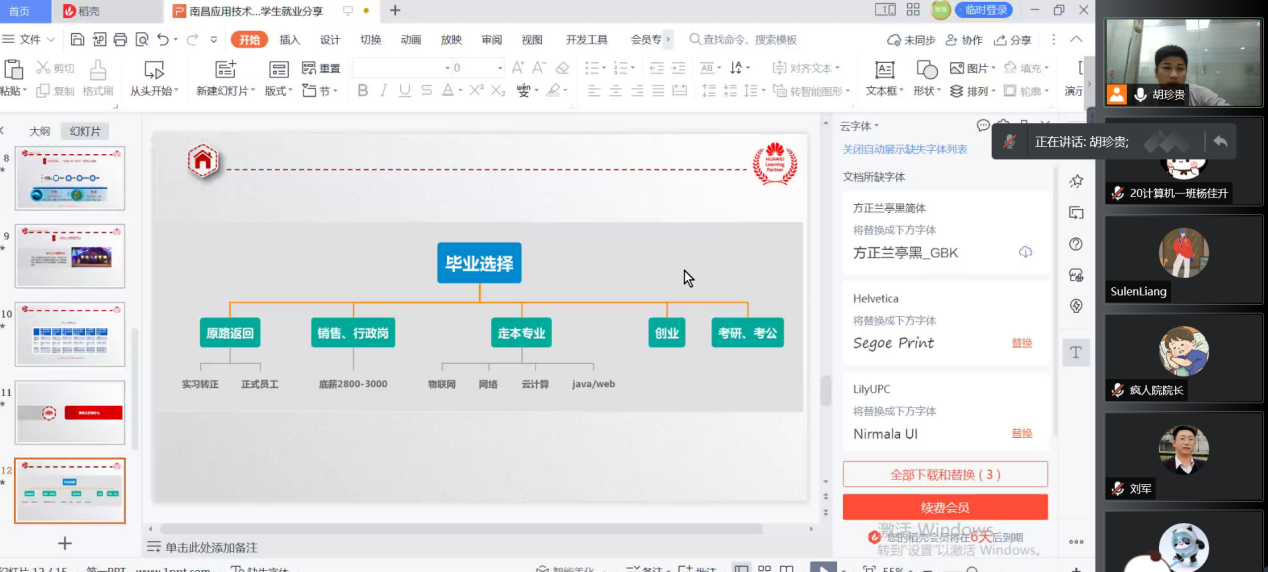 4月27日,华为ICT学院百校行活动—beat365英国官方网站毕业生就业分享会顺利举行。因疫情防控需要,分享会线上举行,由合肥宝德网络江西分公司高级院校经理胡珍贵主持。学院院长邹水龙、软件工程教研室主任刘军、各班级辅导员以及18、19级学生共计60余人参加了此次分享会。