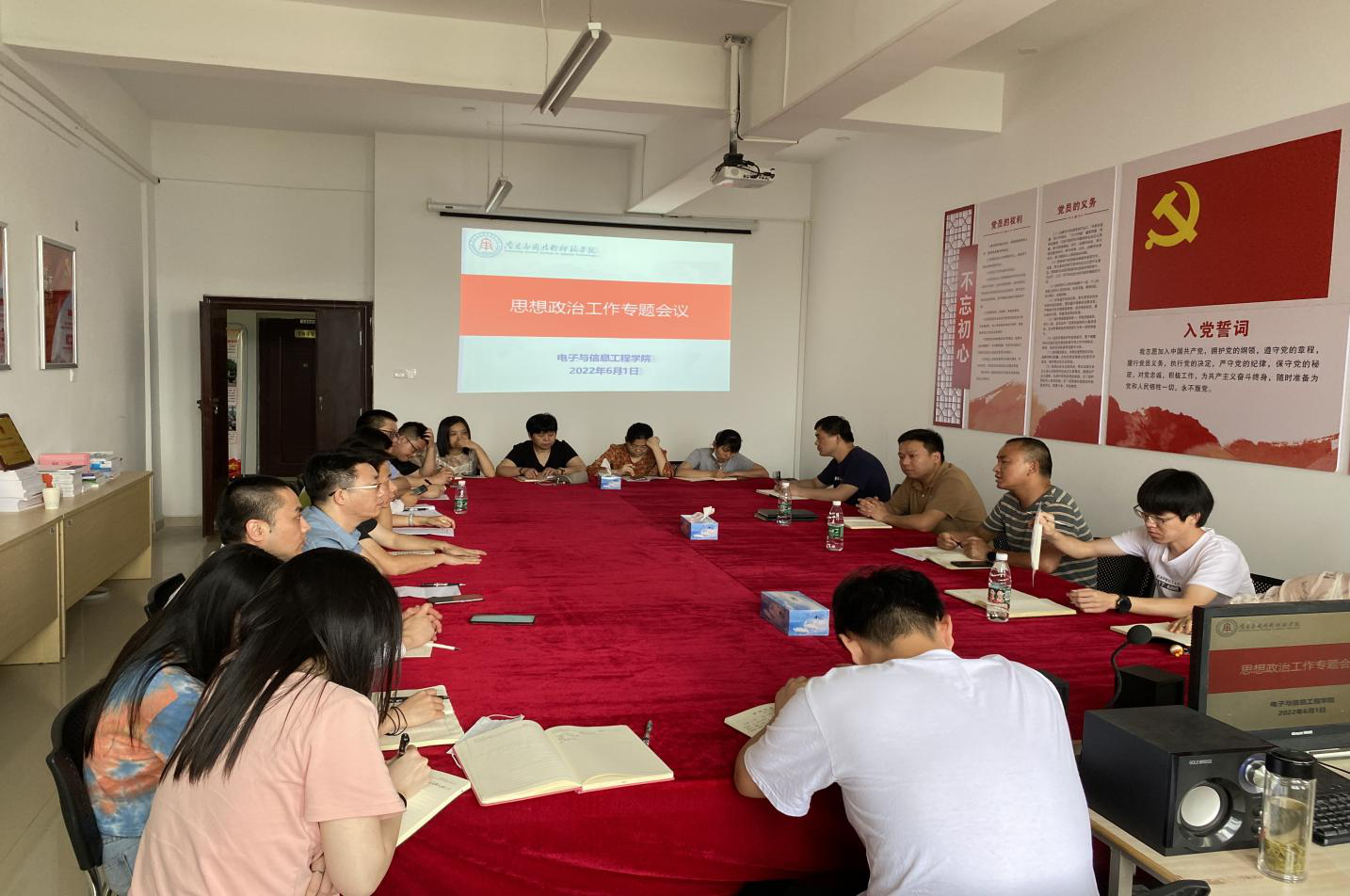 为科学分析beat365官网思想政治工作面临的新形势、新情况和新问题,大力提升学院思想政治工作质量,6月1日下午,beat365官网召开思想政治教育专题工作会议,院长邹水龙、党总支书记龙犇及全体教职工出席会议。