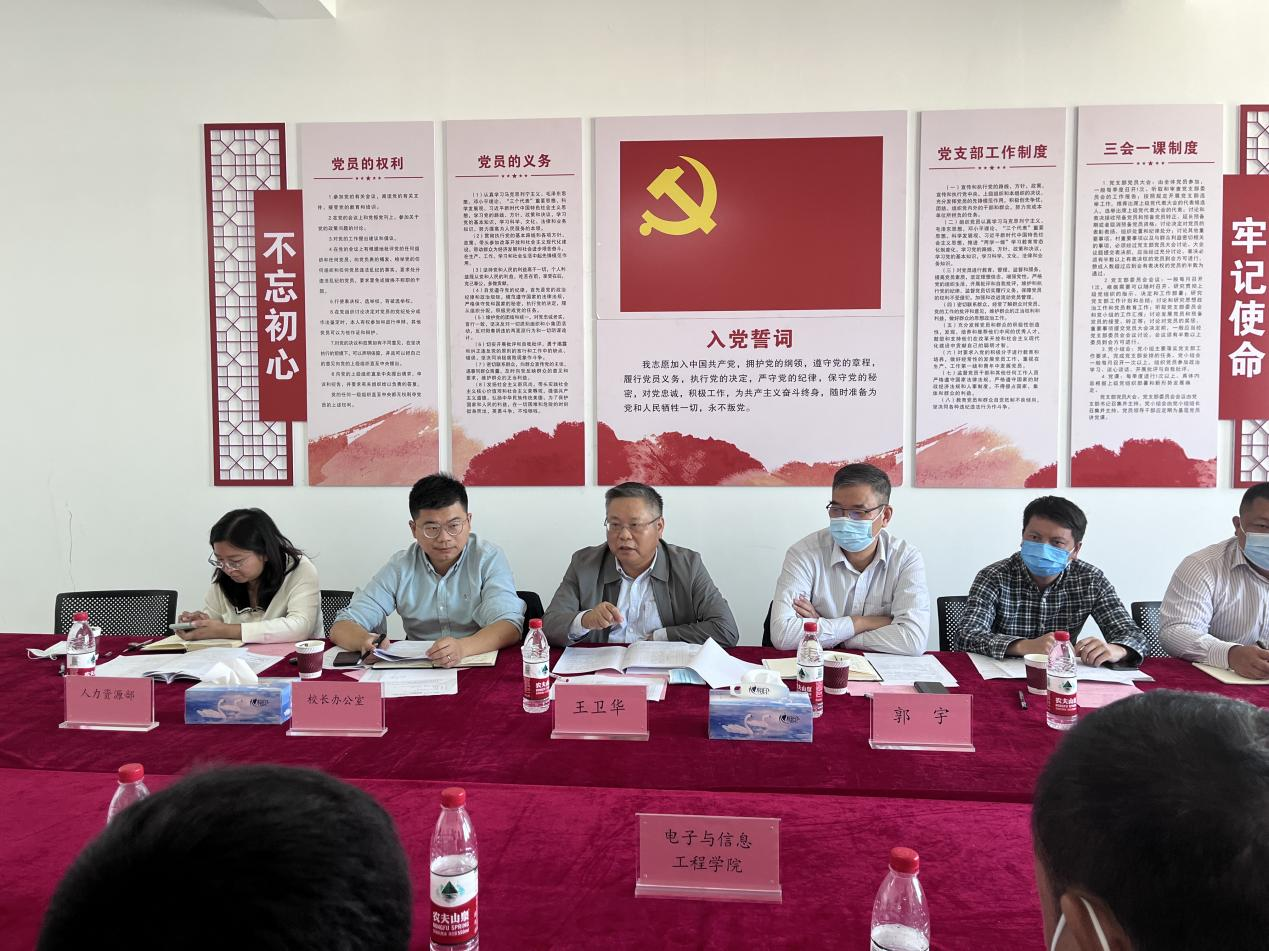 10月17日上午,校长王卫华一行就学校“十四五”规划及综合改革方案学习贯彻落实情况莅临beat365英国官方网站开展工作调研。调研座谈会由党委委员、校长助理郭宇主持,校长办公室、教务处、人力资源部、学工处相关负责人,电子与信息工程学院党政领导班子、教研室主任及教师代表参加座谈会。