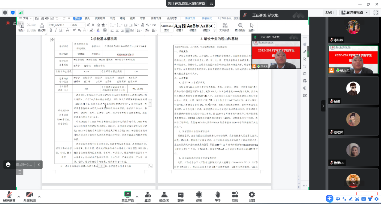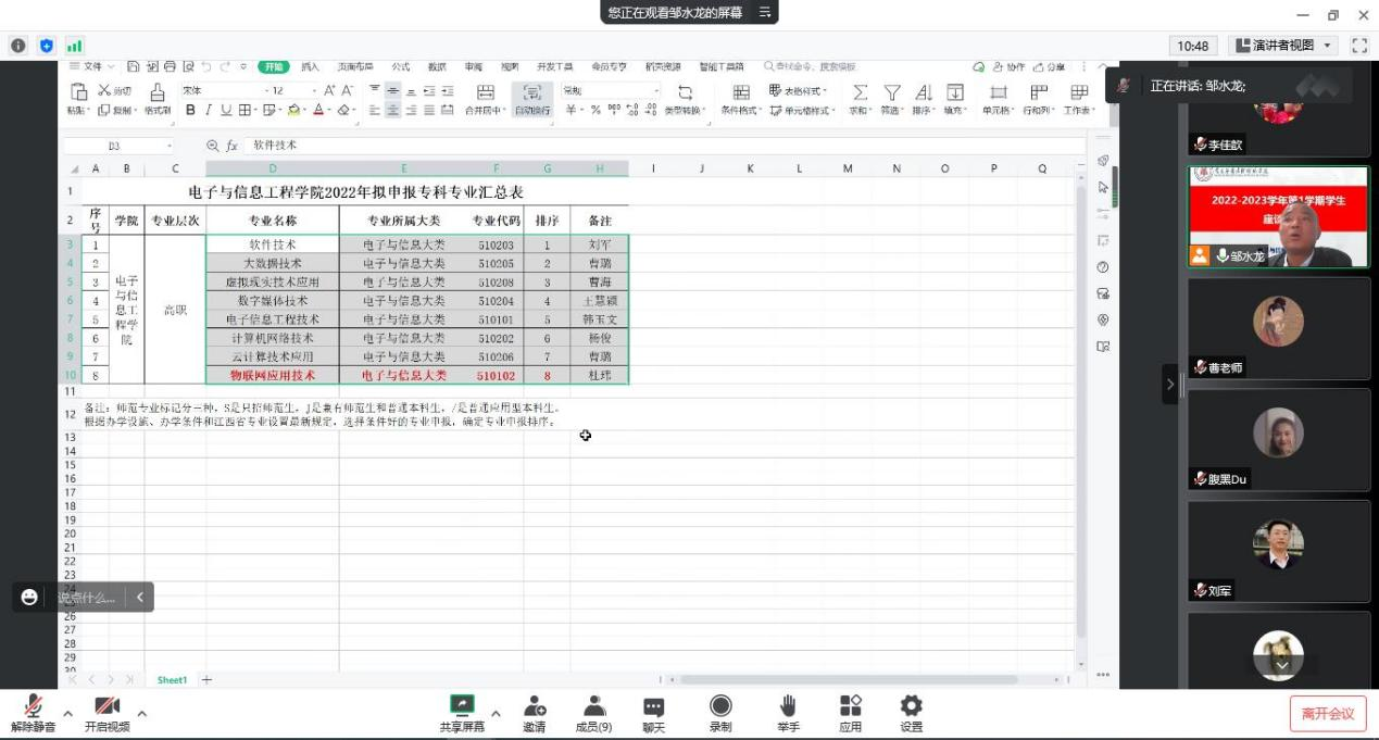 11月1日,beat365英国官方网站利用腾讯会议,线上召开2022年度高职专科专业申报研讨会,教务管理人员、各专科专业负责人参加了此次会议,会议由院长邹水龙主持。