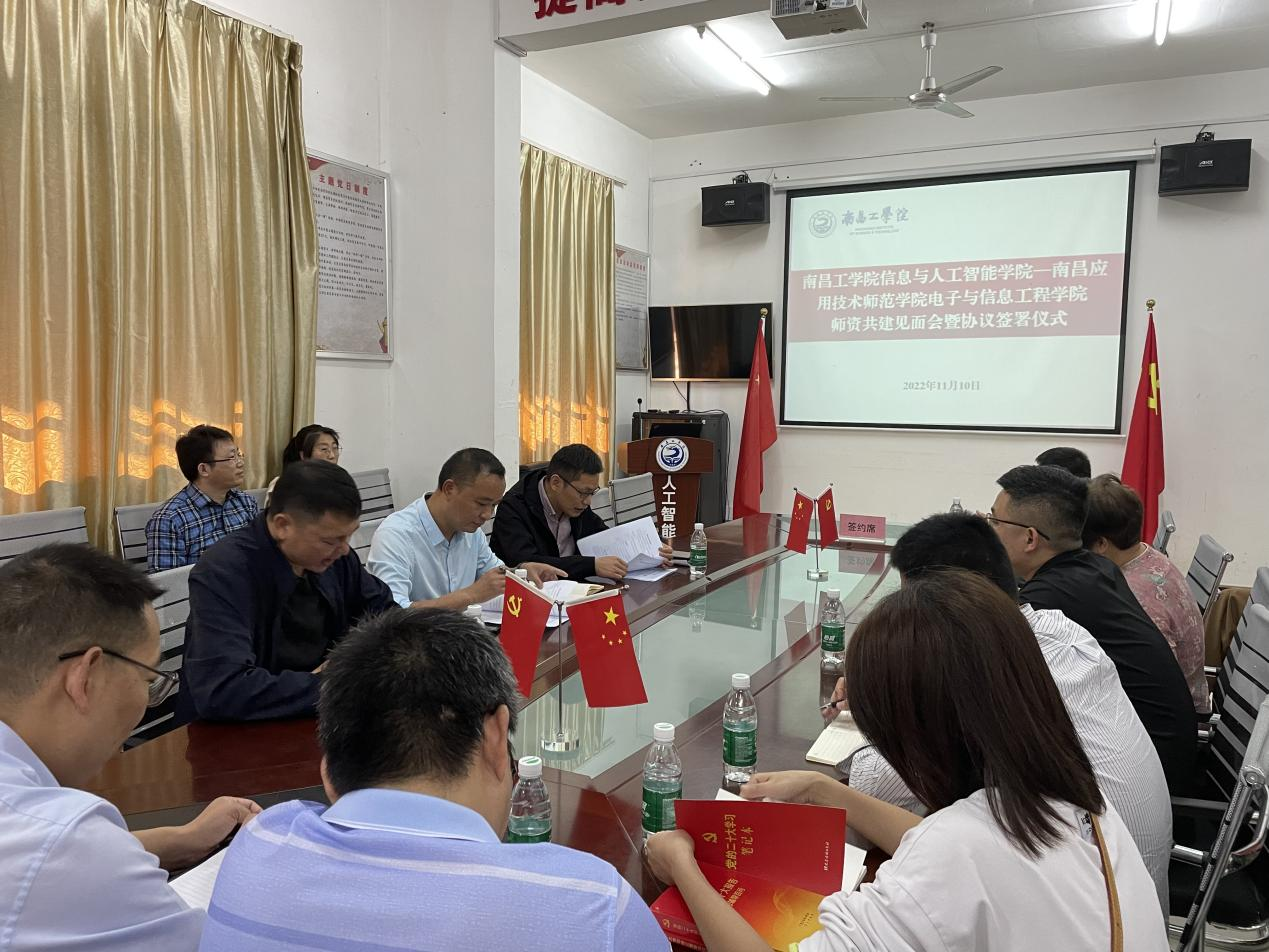 11月10日,beat365英国官方网站beat365英国官方网站、南昌工学院信息与人工智能学院召开师资共建见面会暨协议签署仪式在信息与人工智能学院会议室召开,两校师资共建相关教师参加了会议,会议由信息与人工智能学院院长李少义主持。