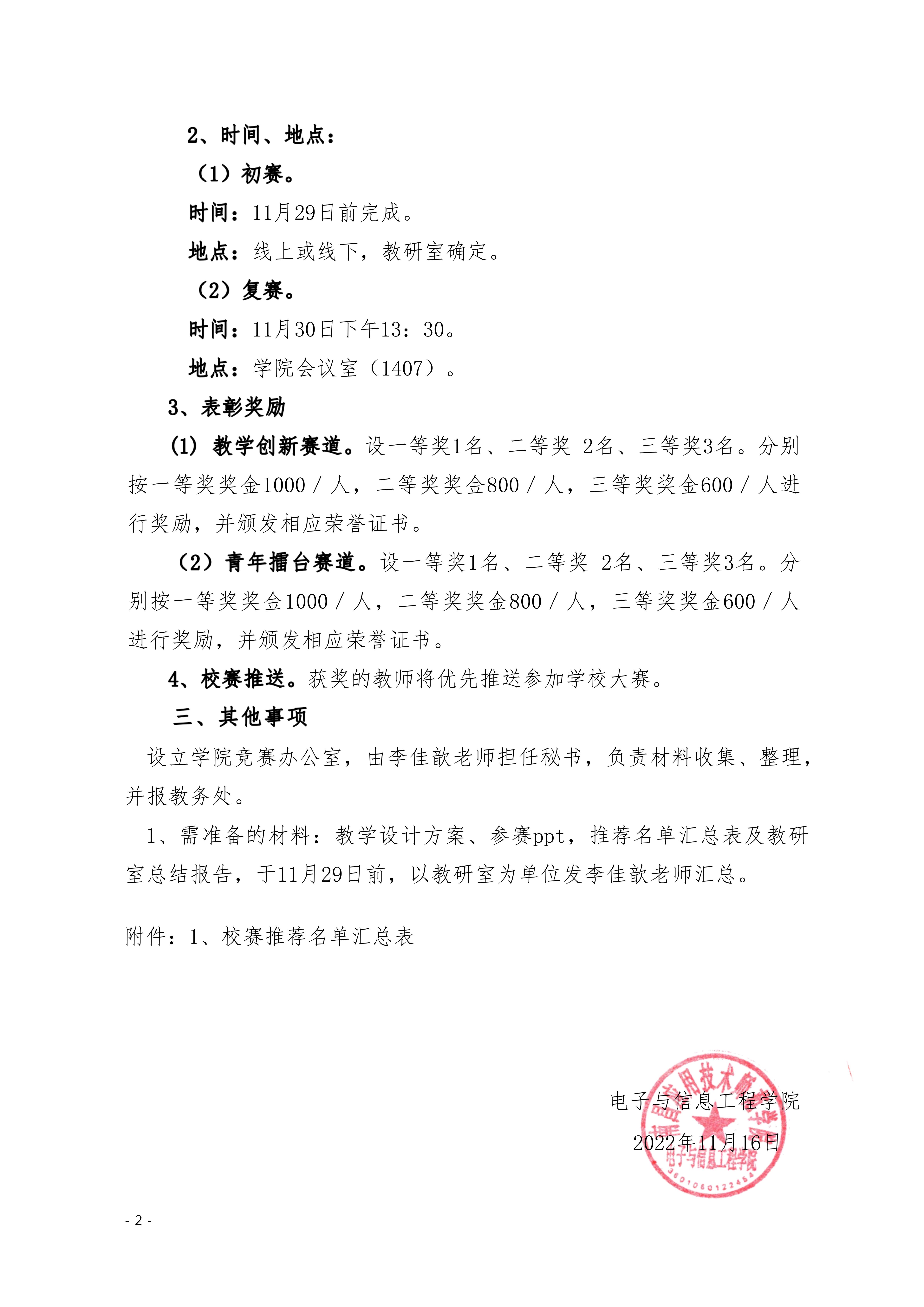 首页栏目 学院新闻 学院公告 学科竞赛 学生工作 您现在的位置是:首页 > 首页栏目 > 学院公告 关于举办学院第二届青年教师教学竞赛的通知 管理员2022-11-161251 上一篇 关于拟付章鹰同志转为正式党员的公示 下一篇 关于校级优秀共青团员、校级五四红旗团支部、校级优秀志愿者拟推荐名单