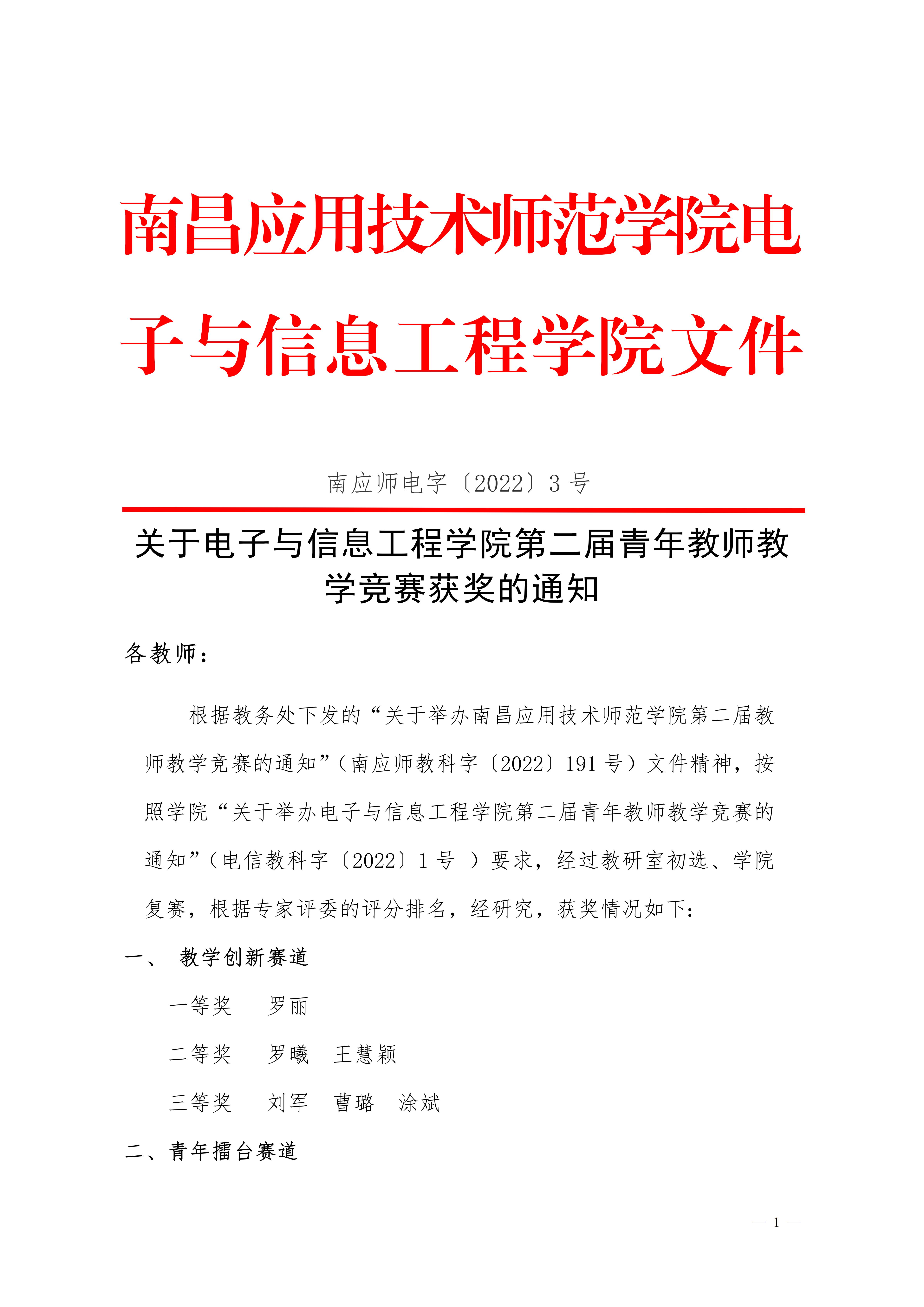 首页栏目 学院新闻 学院公告 学科竞赛 学生工作 您现在的位置是:首页 > 首页栏目 > 学院公告 关于学院第二届青年教师教学竞赛获奖的通知 管理员2022-12-011261 上一篇 关于举办学院第二届青年教师教学竞赛的通知 下一篇 关于校级优秀共青团员、校级五四红旗团支部、校级优秀志愿者拟推荐名单