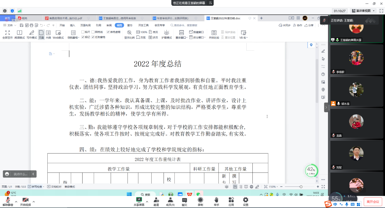 12月14日,beat365英国官方网站利用腾讯会议,线上召2022年度全员考核民主测评会,会议由院长邹水龙主持。