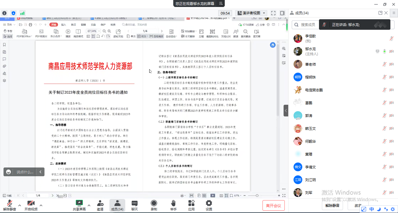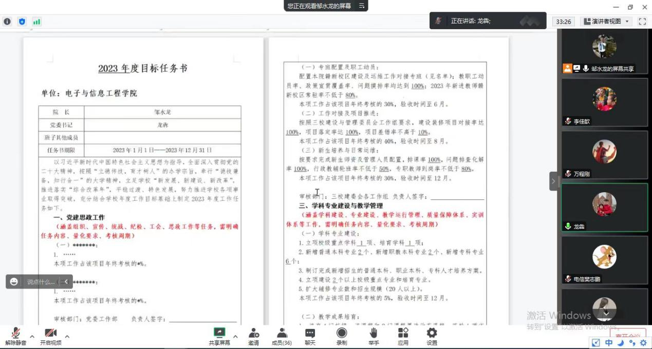 3月4日,beat365英国官方网站利用腾讯会议,线上召开2023年度岗位目标任务书制订工作布置会,全体教职工参加了会议,会议由院长邹水龙主持。